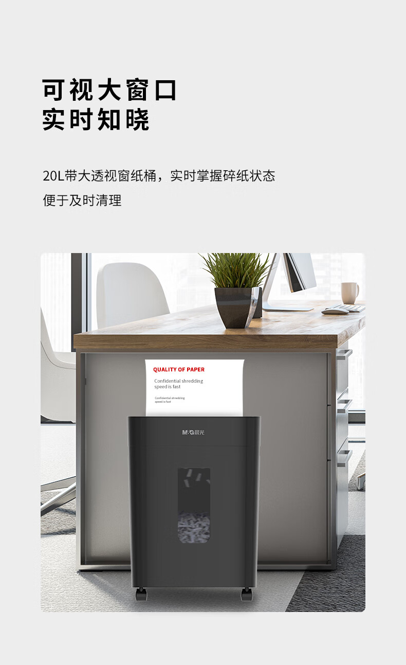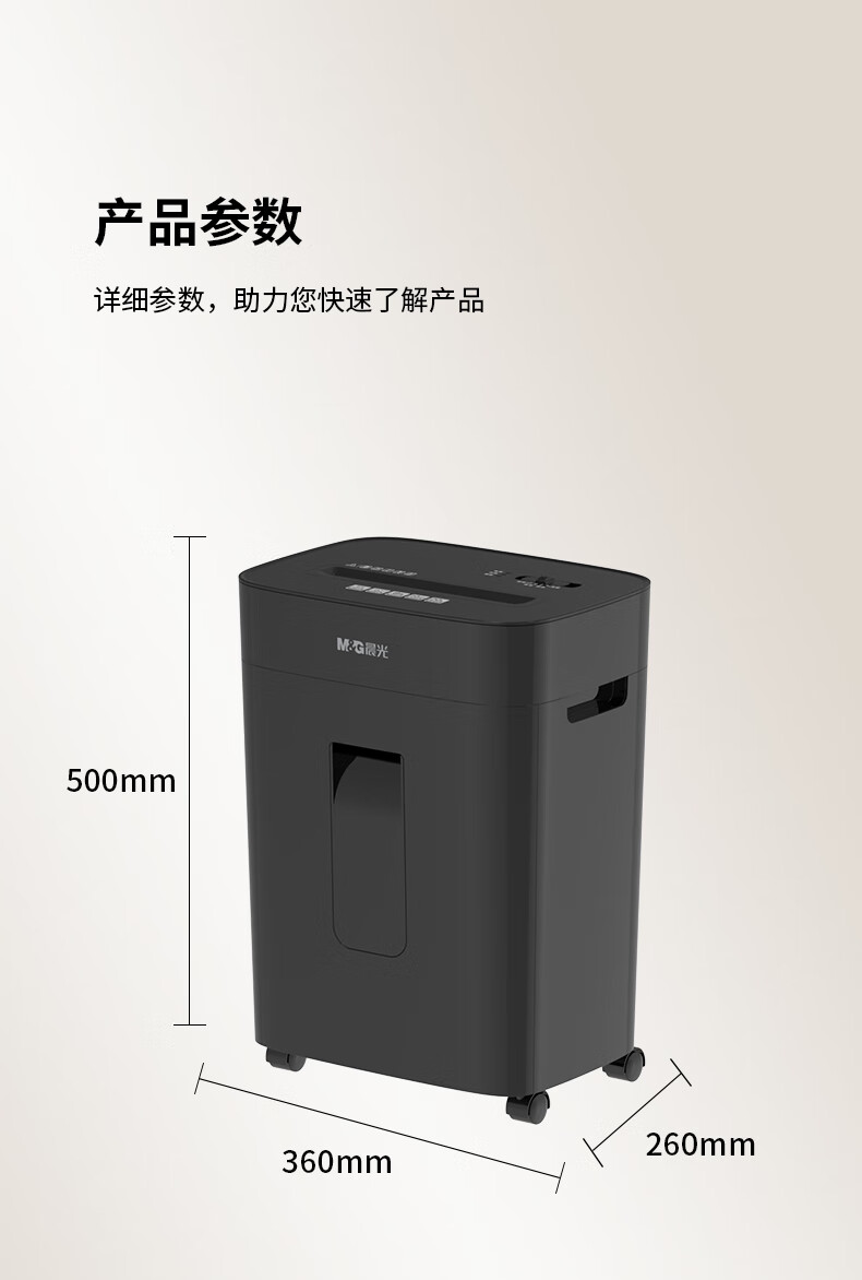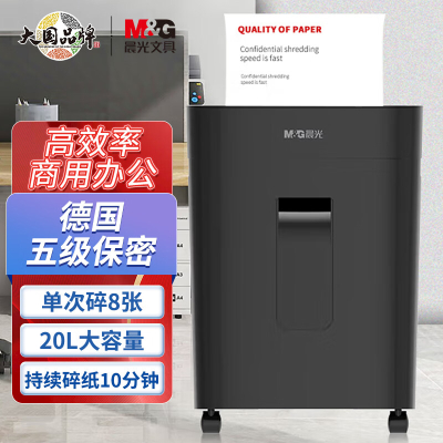 商品名称:晨光(M&G) 碎纸机 5级高保密碎纸机 多功能办公商用文件粉碎机(单次8张 20L 持续10分钟可碎卡碎订书针)AEQ918N911