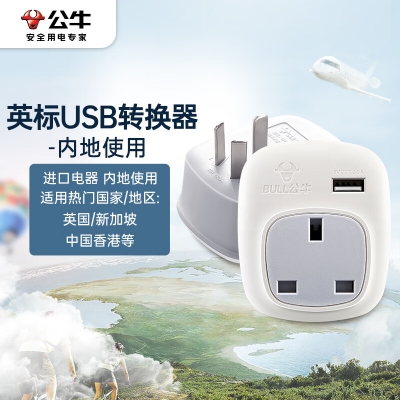 商品名称:公牛 转换插头/国标转英标/电源转换器插座 适合内地使用 带USB口 GN-911CE