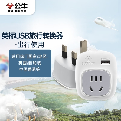 商品名称:公牛(BULL)USB旅行转换插头/英标转国标/电源转换器 英标地区适用(英国 中国香港 新加坡等) GN-911E