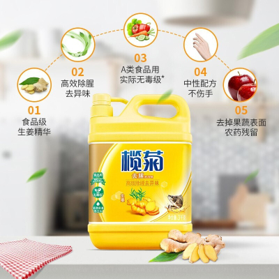 商品名称:榄菊 生姜洗洁精3kg 厨房洗碗洗涤灵A类食品用级别果蔬清洗剂