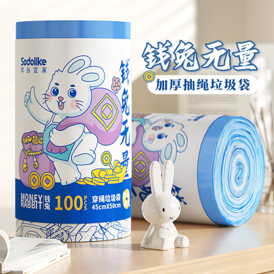 尚岛宜家兔年钱兔无量加厚抽绳垃圾袋100只45*50cm 自动收口家用清洁袋