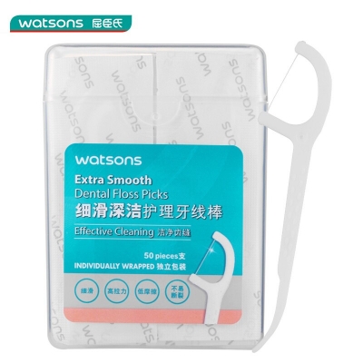 屈臣氏细滑深洁护理牙线棒50支(独立包装)清洁牙齿不伤牙龈牙签专业洁齿