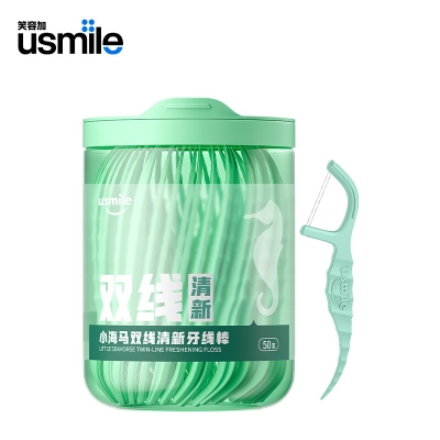 商品名称:usmile笑容加 小海马双线清新牙线棒牙签50支*1盒 舒适洁齿 超细剔牙签