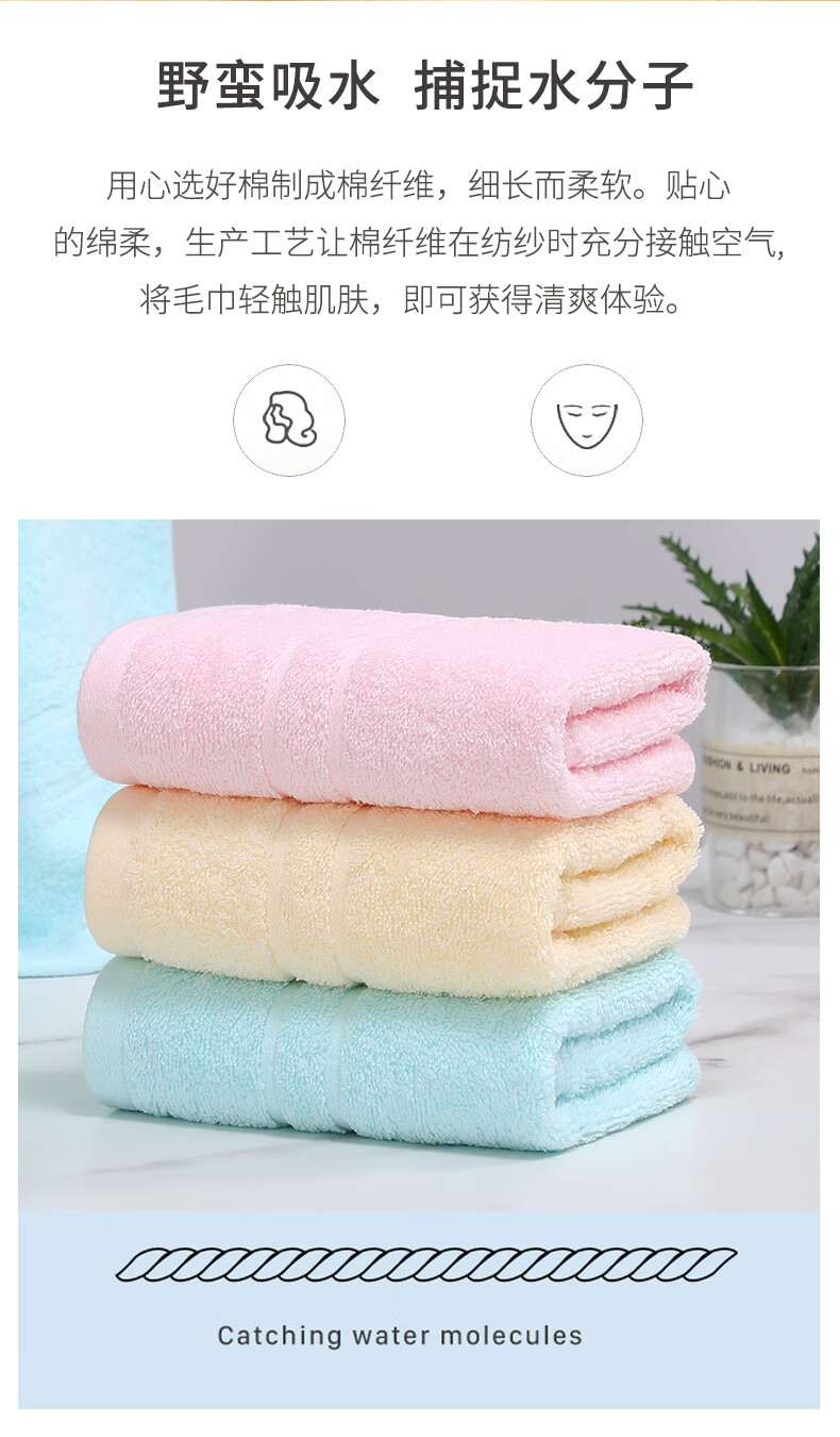 商品名称:洁丽雅毛巾 全棉纯色A类新疆棉洗脸巾男士女士小毛巾 柔软吸水面巾简约款60*30cm/70g