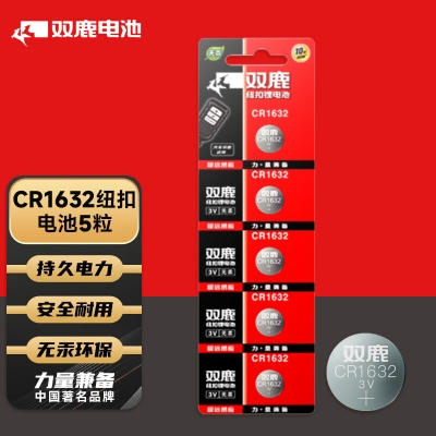 双鹿 CR1632纽扣电池3V锂电子5粒卡装 适用于比亚迪丰田凯美瑞汽车钥匙等 CR1632 5粒卡装