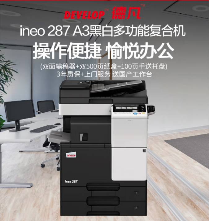 德凡 复合机 ineo 287 A3黑白多功能复合机标配 (双面输稿器+双500页纸盒+100页手进托盘)