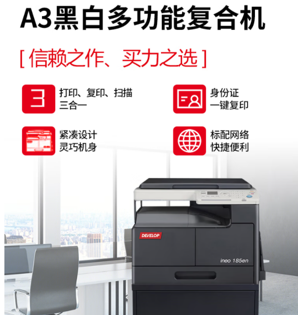 德凡 复合机 ineo 185en A3复印机 打印机办公 黑白复合机+工作底柜