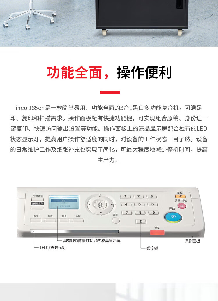 商品名称:德凡 复合机 ineo 185en A3复印机 打印机办公 黑白复合机+工作底柜