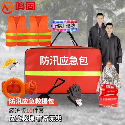 鸣固 防汛应急包 水灾抗洪抢险应急物资雨季汛期防灾救援包消防户组合套装救生便携急救包救灾物资工具经济版 10件套