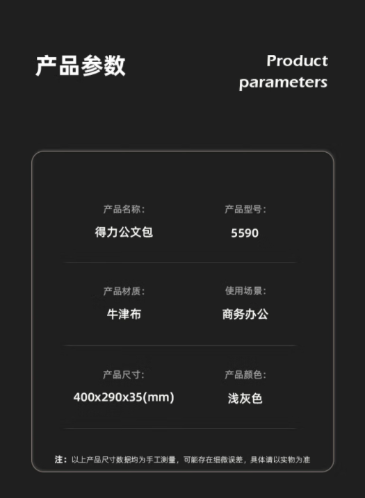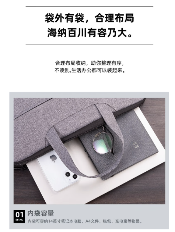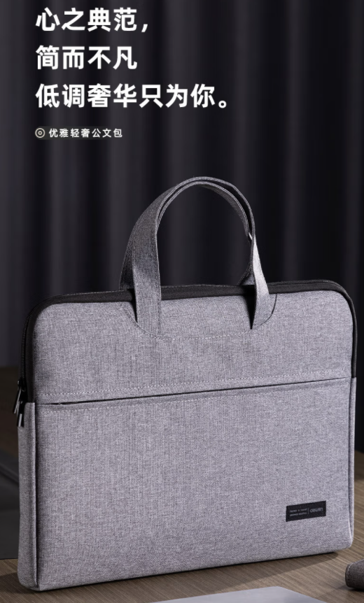 商品名称:得力 公文包 加厚立体办公手提袋/会议包/事务包/商务拉链袋电脑公文包便携 浅灰5590