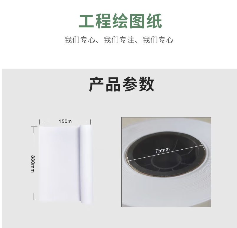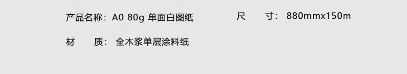 商品名称:印乐 A0工程纸 绘图纸 打印纸 80g机械设计制图纸150米一卷双面白色纸 白色 A0 80g 150米 3寸 1卷 880mm*150米