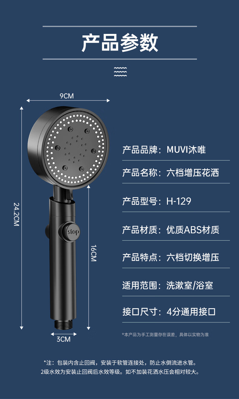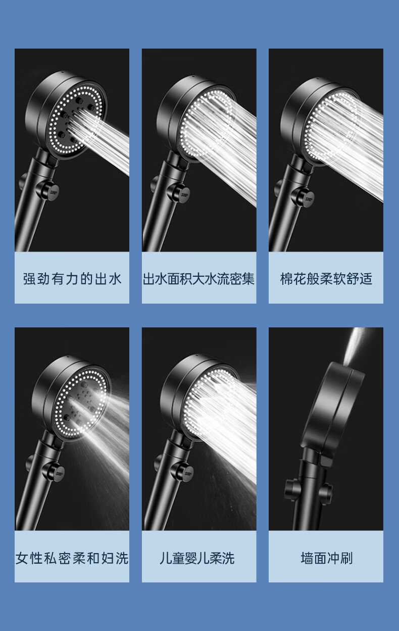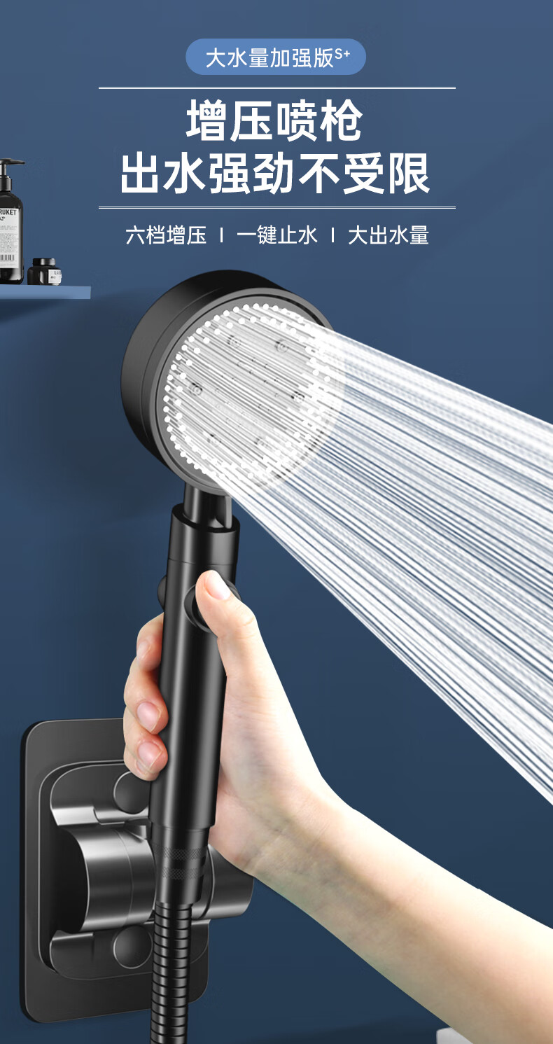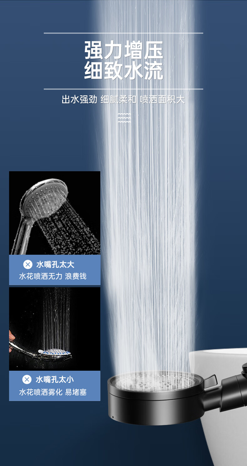商品名称:沐唯 淋浴增压花洒喷头H-003+1.5米软管 两件全套装 高加压浴室手持莲蓬头洗澡神器