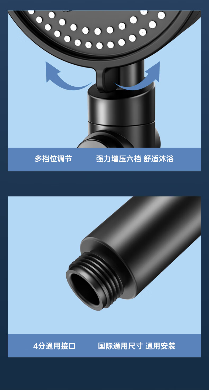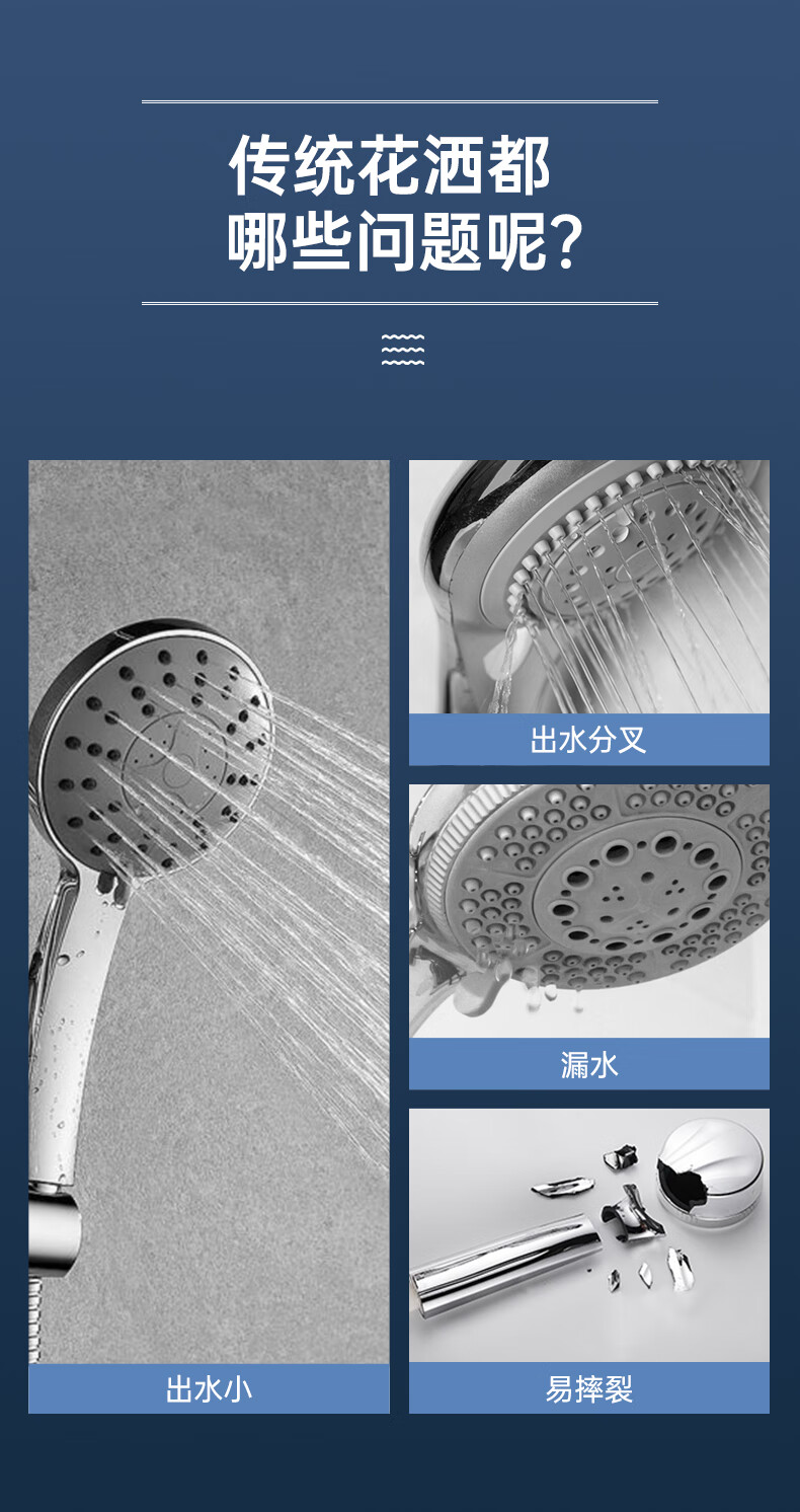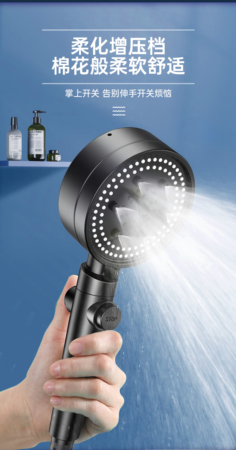 商品名称:沐唯 淋浴增压花洒喷头H-003+1.5米软管 两件全套装 高加压浴室手持莲蓬头洗澡神器