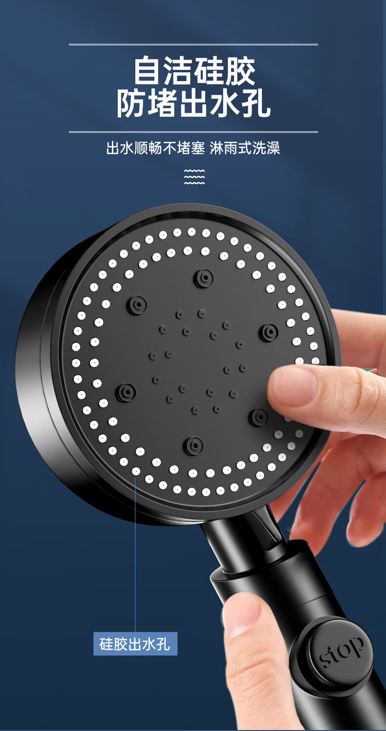 沐唯 淋浴增压花洒喷头H-003+1.5米软管 两件全套装 高加压浴室手持莲蓬头洗澡神器