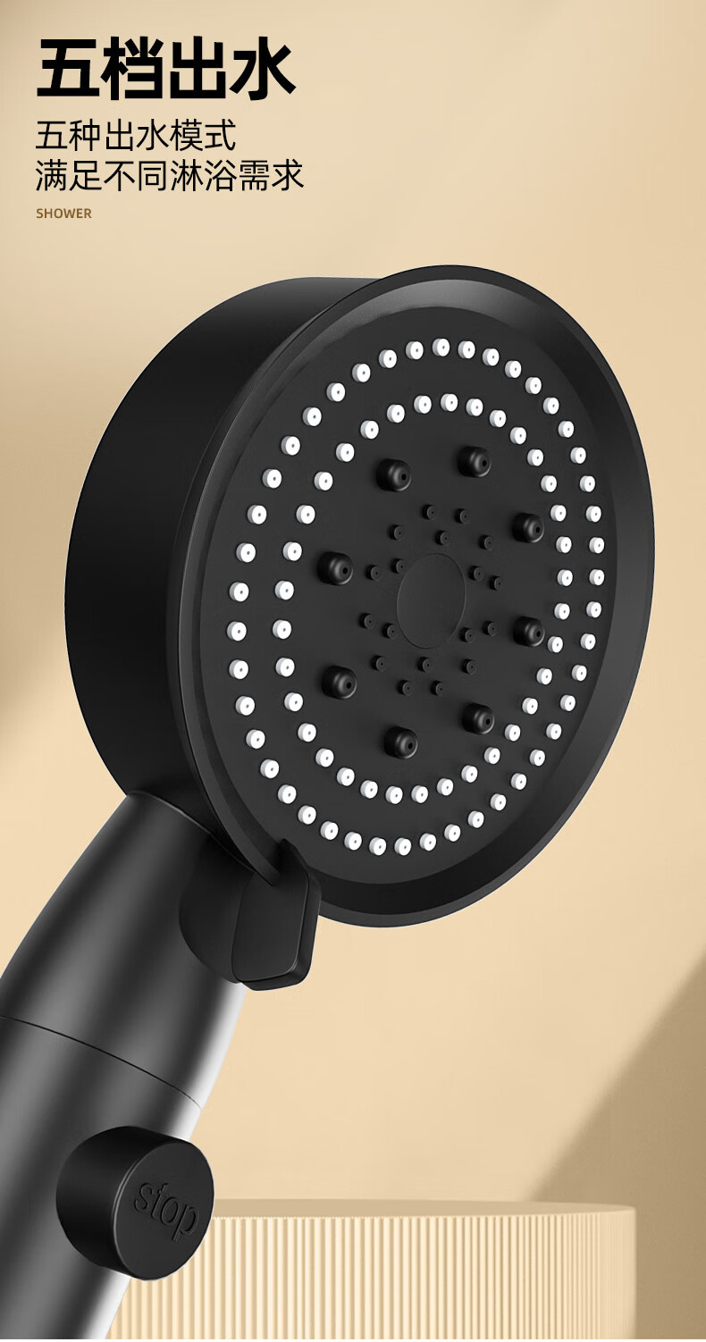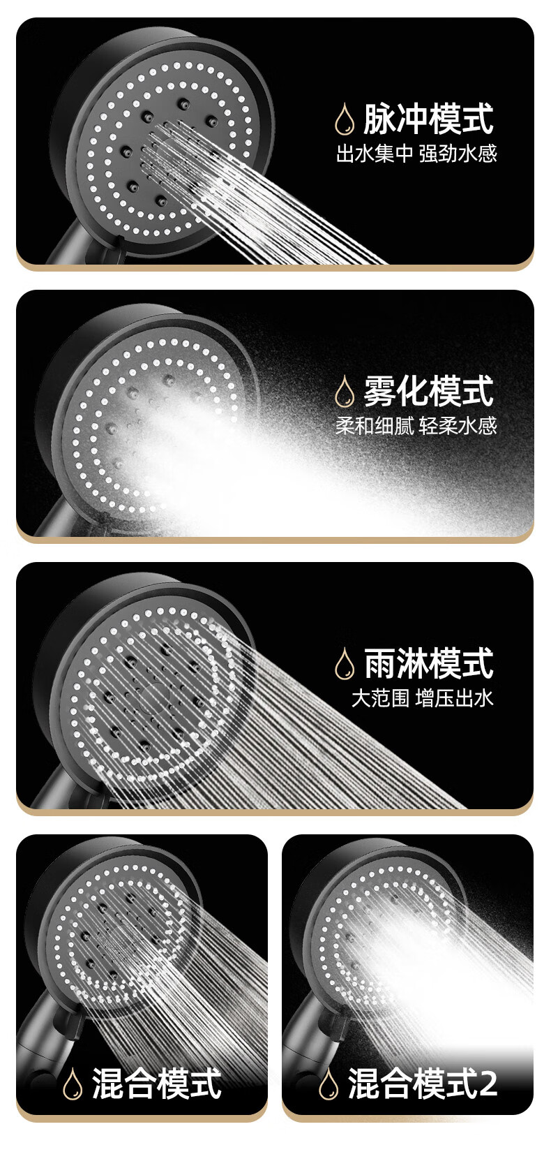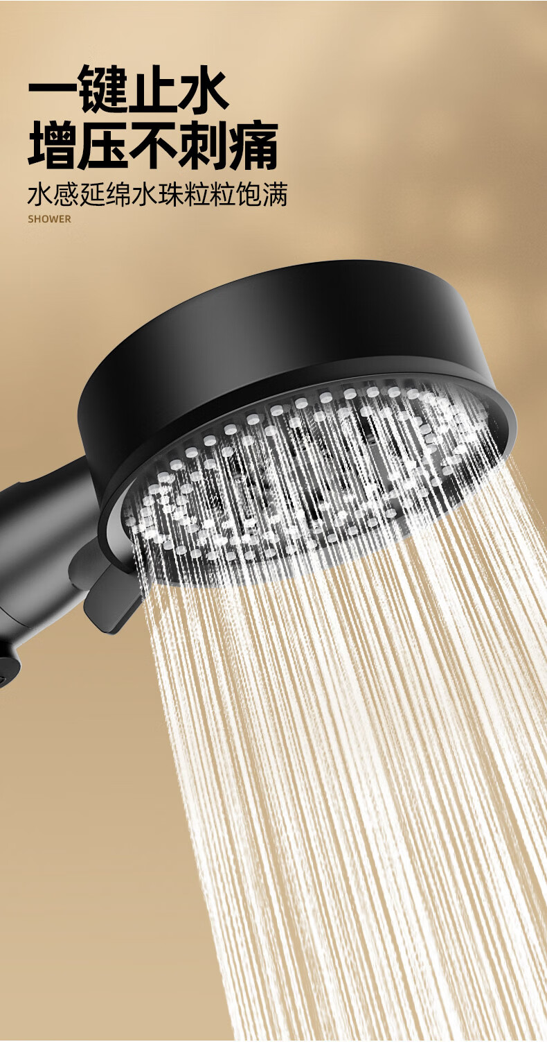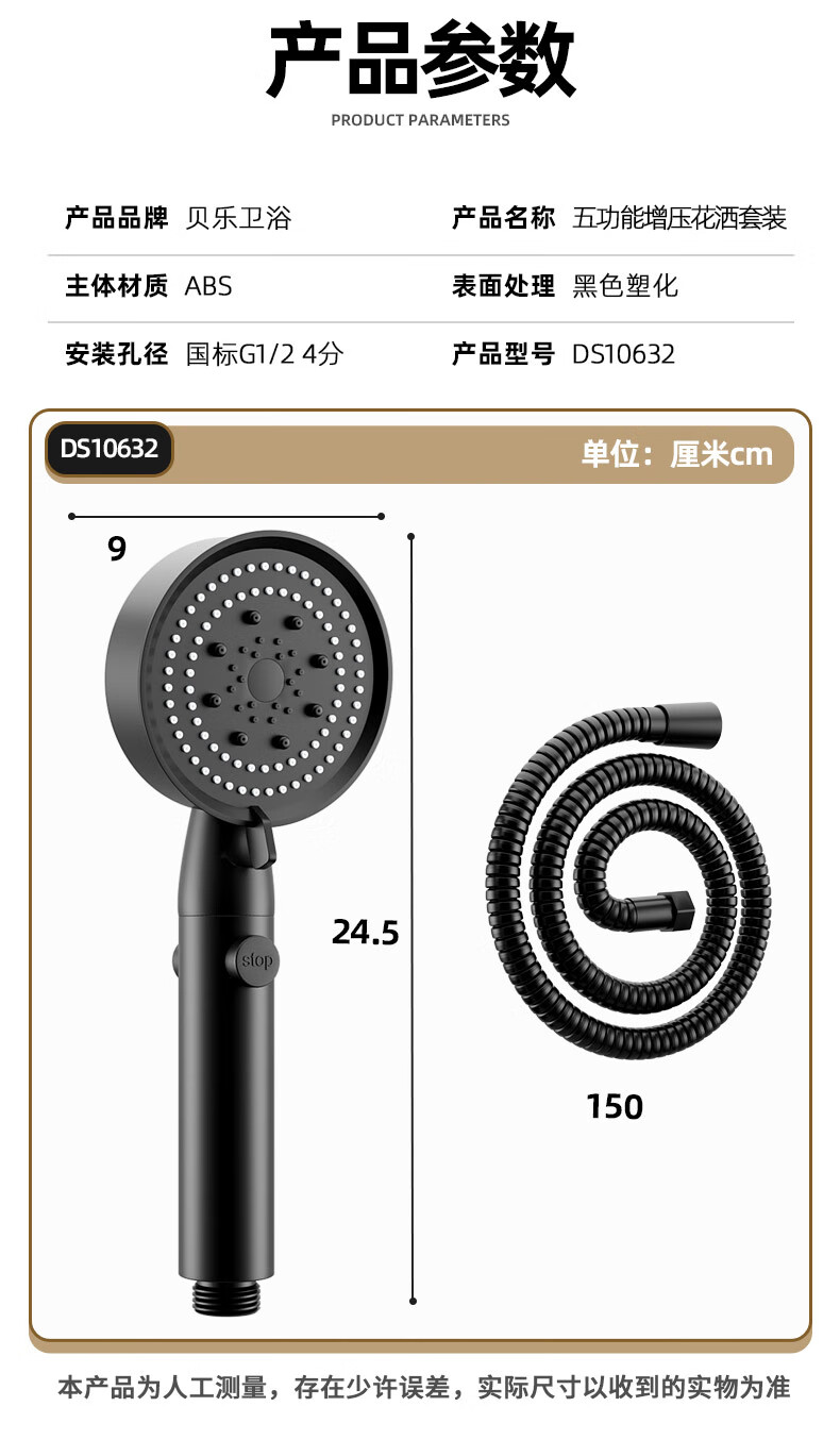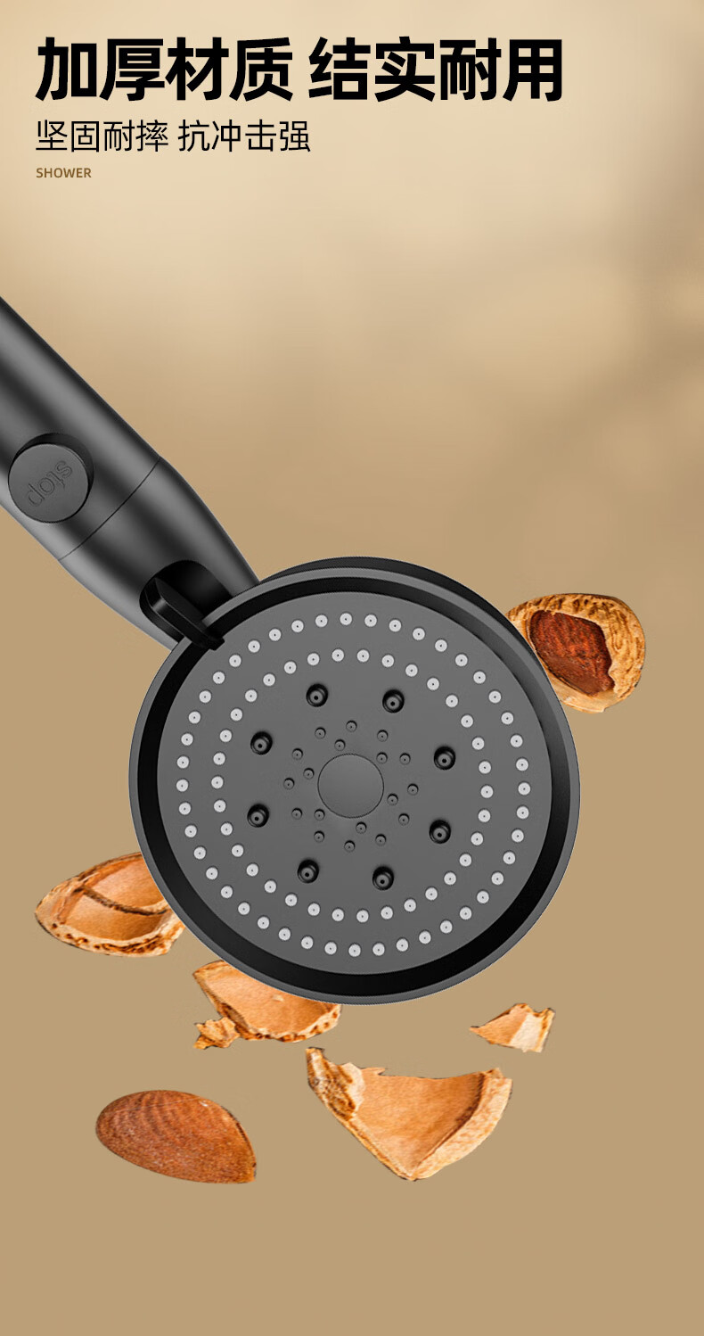 商品名称:贝乐 手持黑色增压花洒头喷头DS10632+1.5米黑色软管两件套 加压浴室洗澡莲蓬头淋浴头