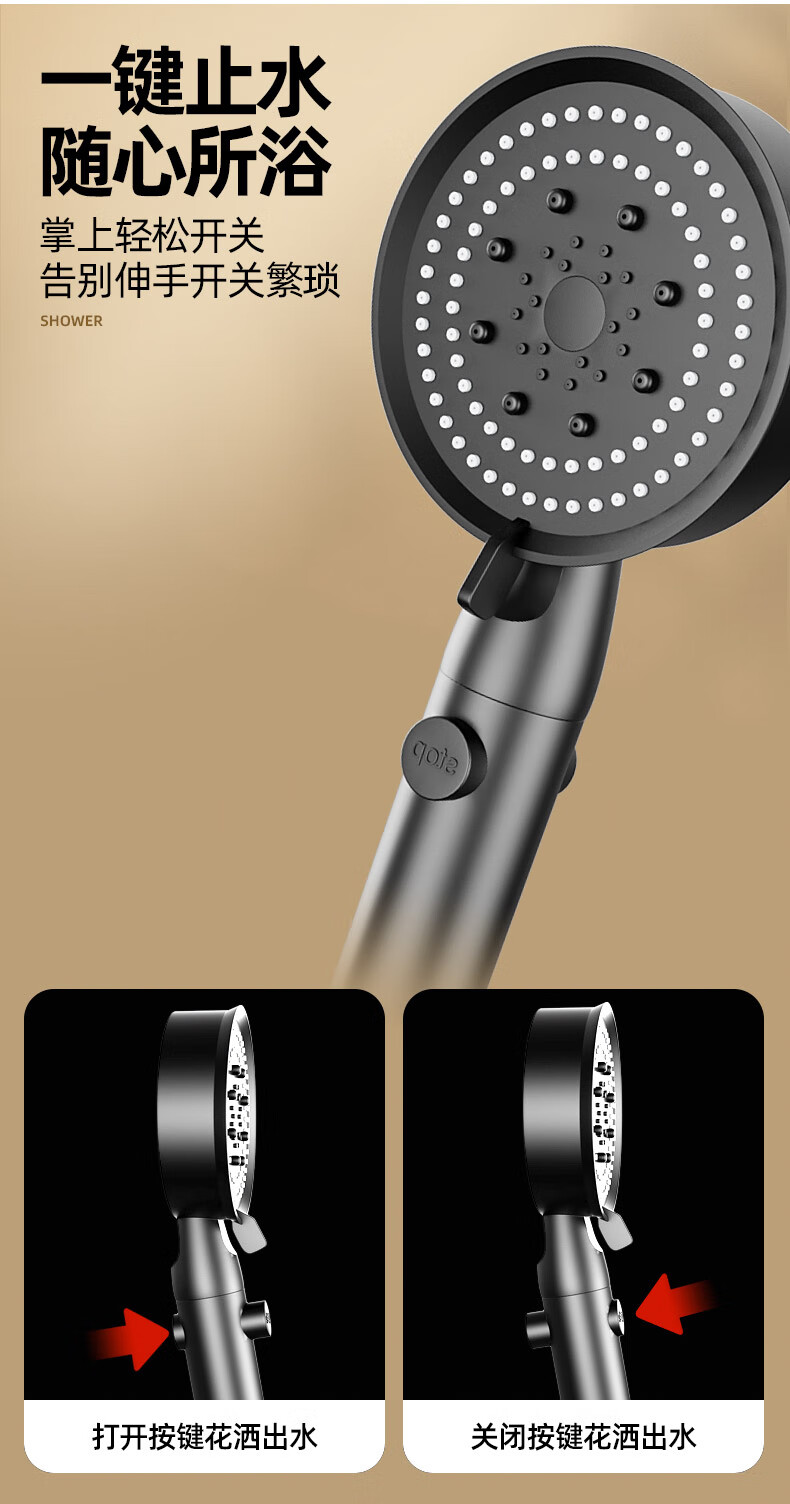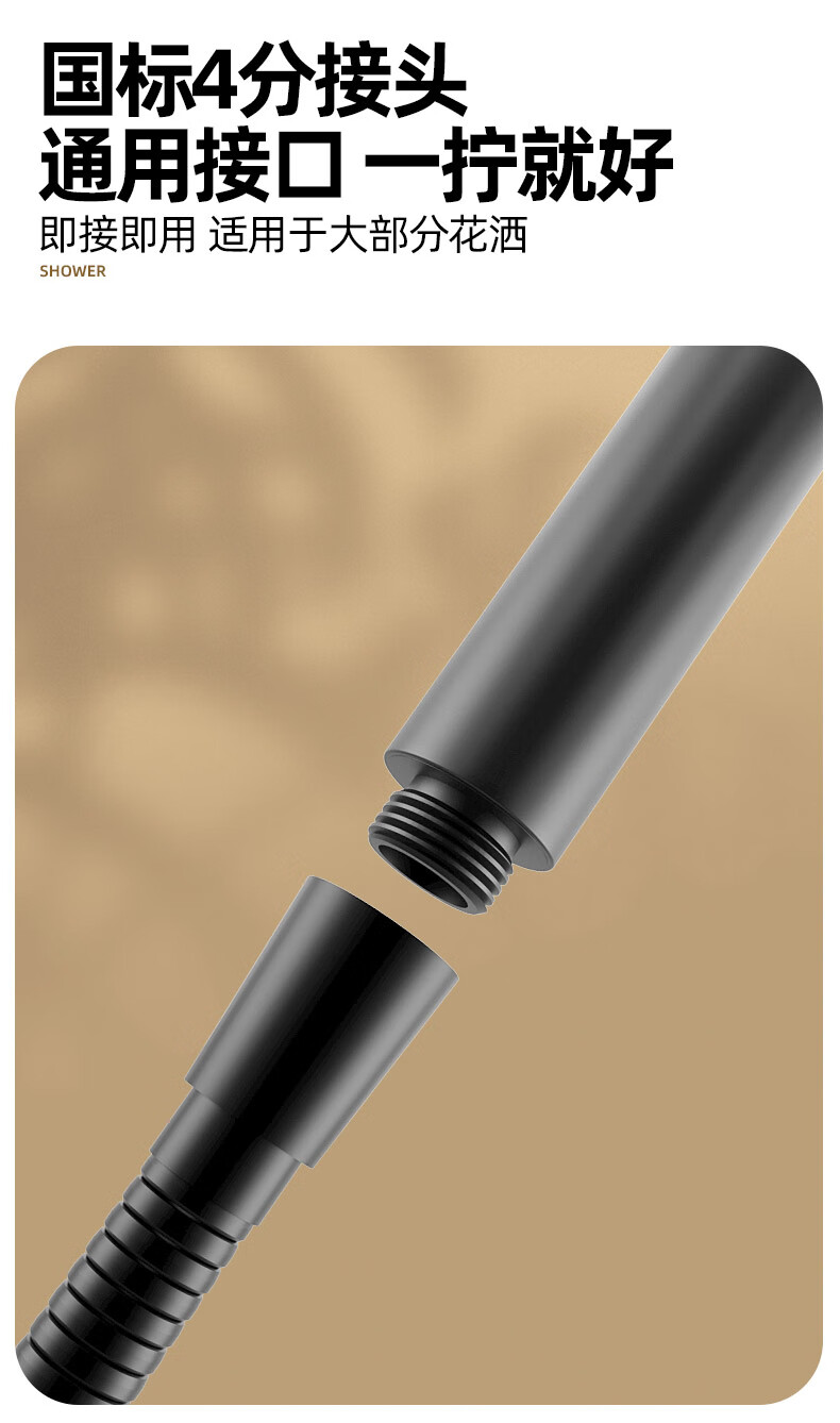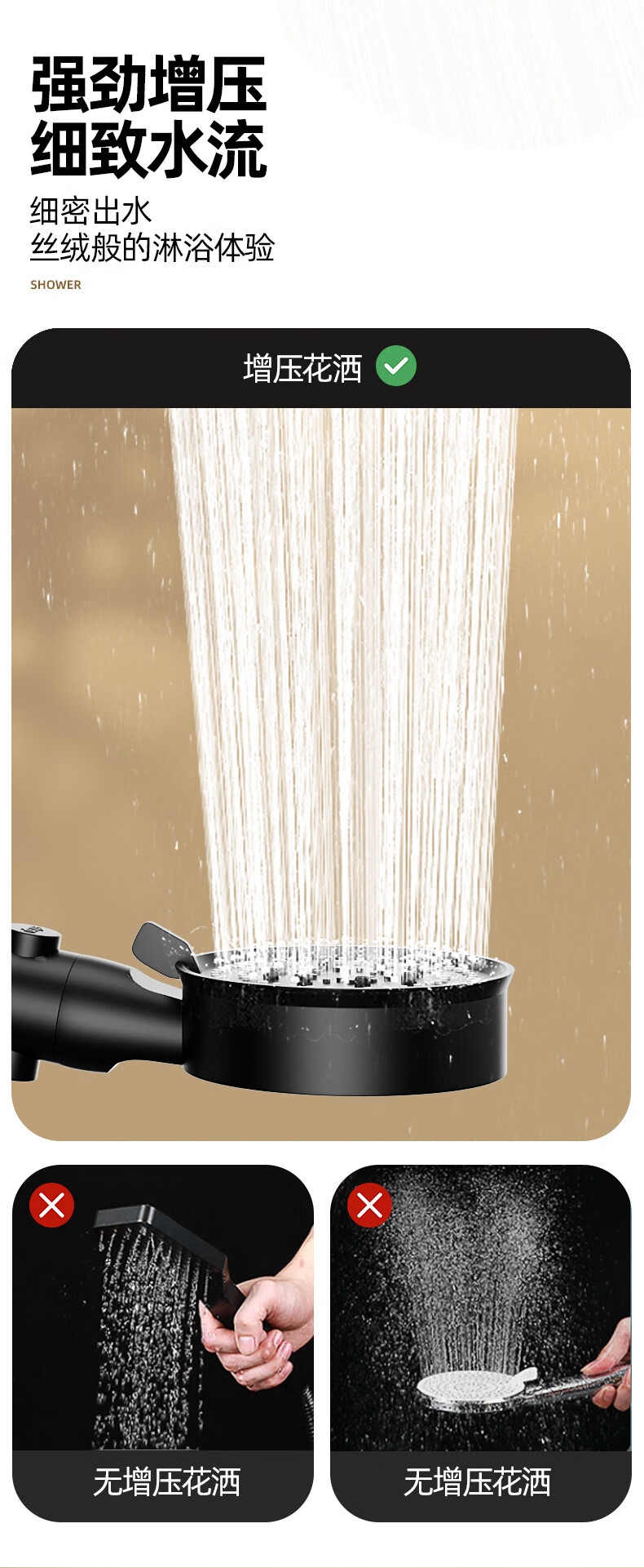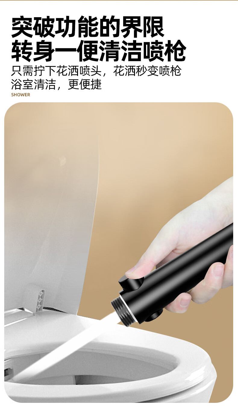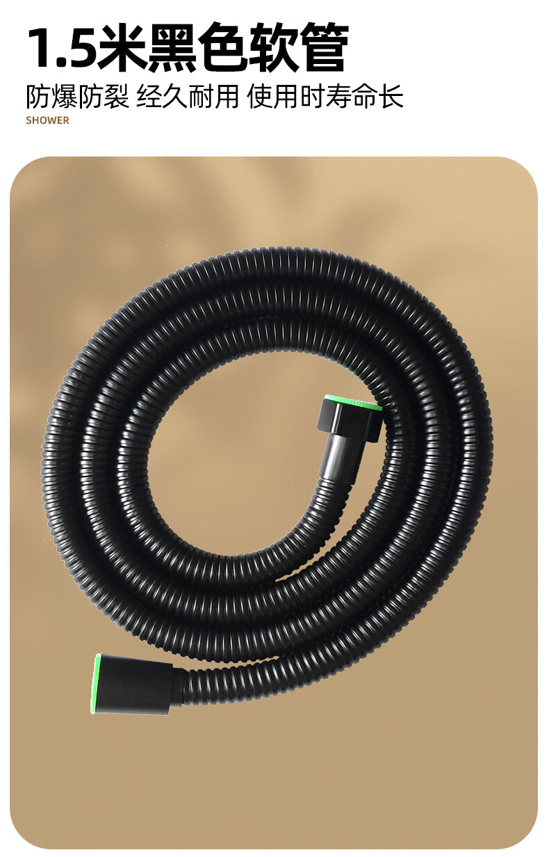 商品名称:贝乐 手持黑色增压花洒头喷头DS10632+1.5米黑色软管两件套 加压浴室洗澡莲蓬头淋浴头