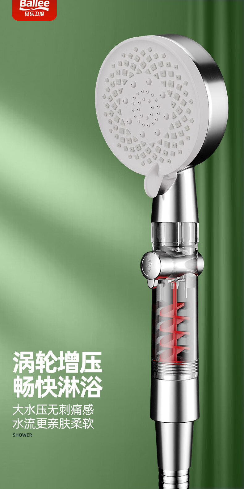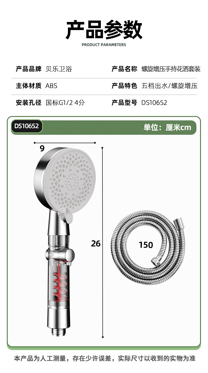 商品名称:贝乐卫浴 增压花洒淋浴喷头 手持花洒浴室花洒头 DS10652+1.5米不锈钢软管