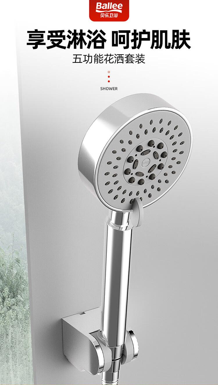 商品名称:贝乐卫浴 三件套手持花洒莲蓬手握淋浴花洒喷头套装DS2625+1.5米不锈钢软管+花洒浴头支架