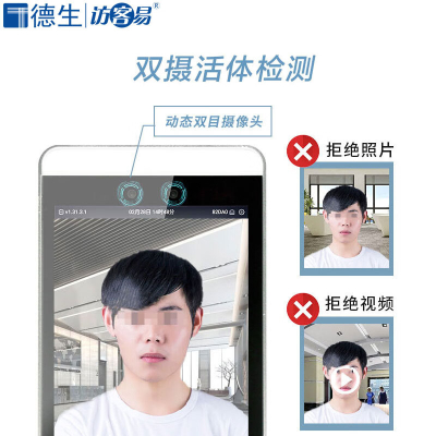 德生访客易TSR-Z1人脸识别签到终端一体机 动态人脸比对认证 身份证ic卡刷脸门禁 数据管理后台 标配