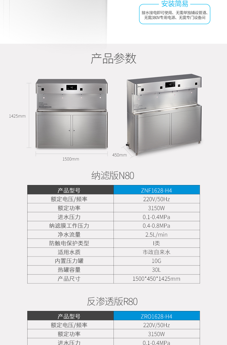 商品名称:美的(Midea)ZRO1628-H4(R80)净饮加热一体机 四水龙头 学校宿舍机场食堂适用