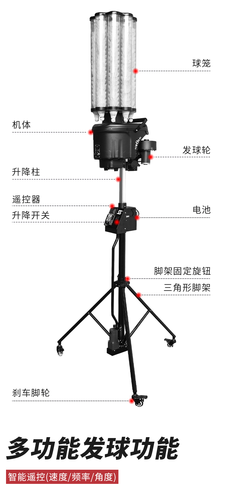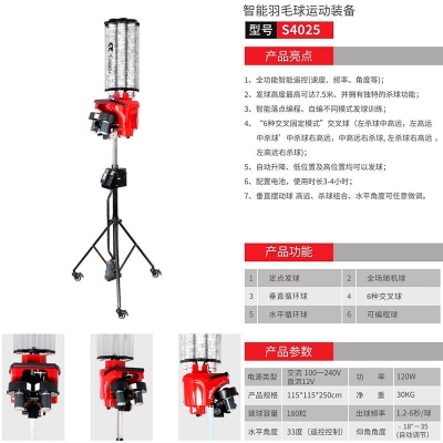 商品名称:斯波阿斯 S4025智能自动羽毛球发球机发球器户外运动智能体育用品遥控陪练器球馆教练机训练器练习器