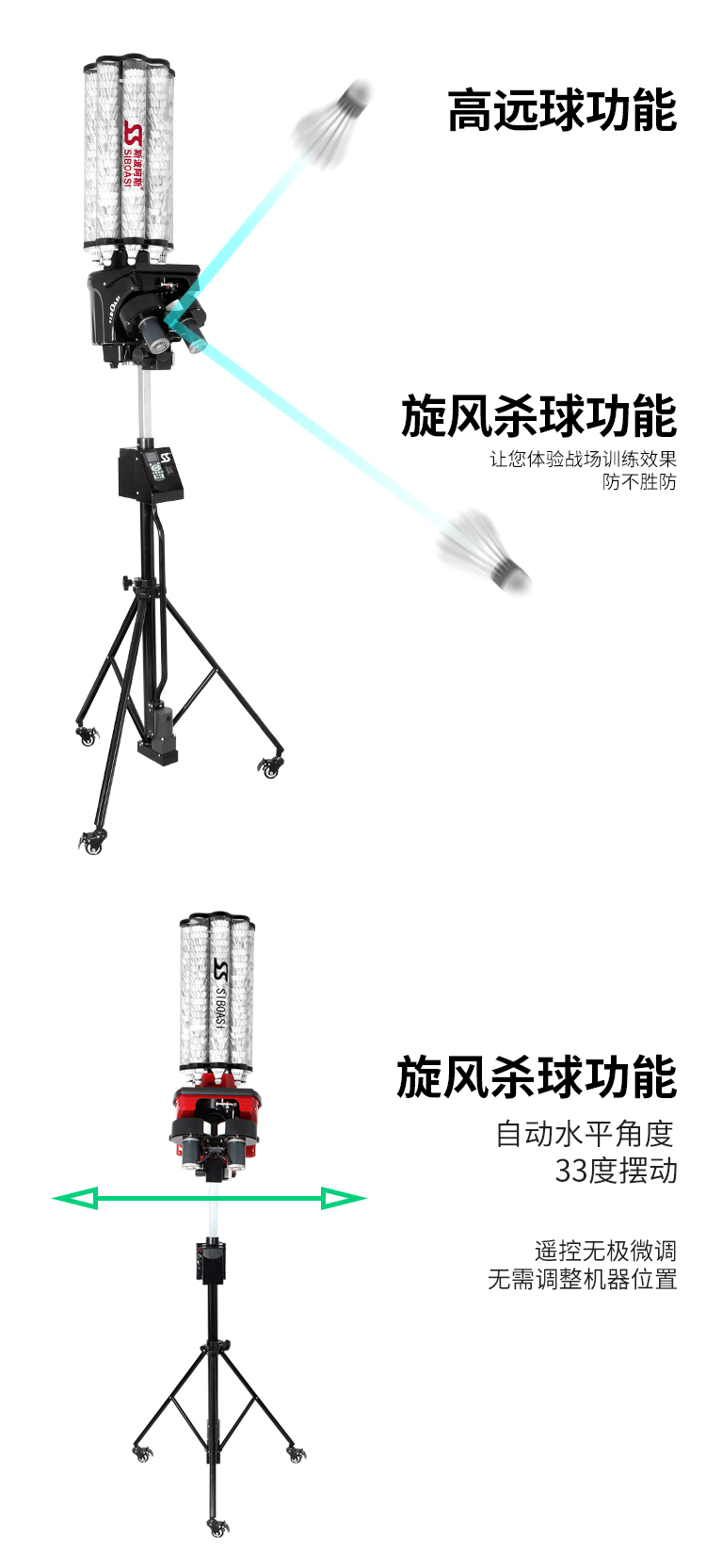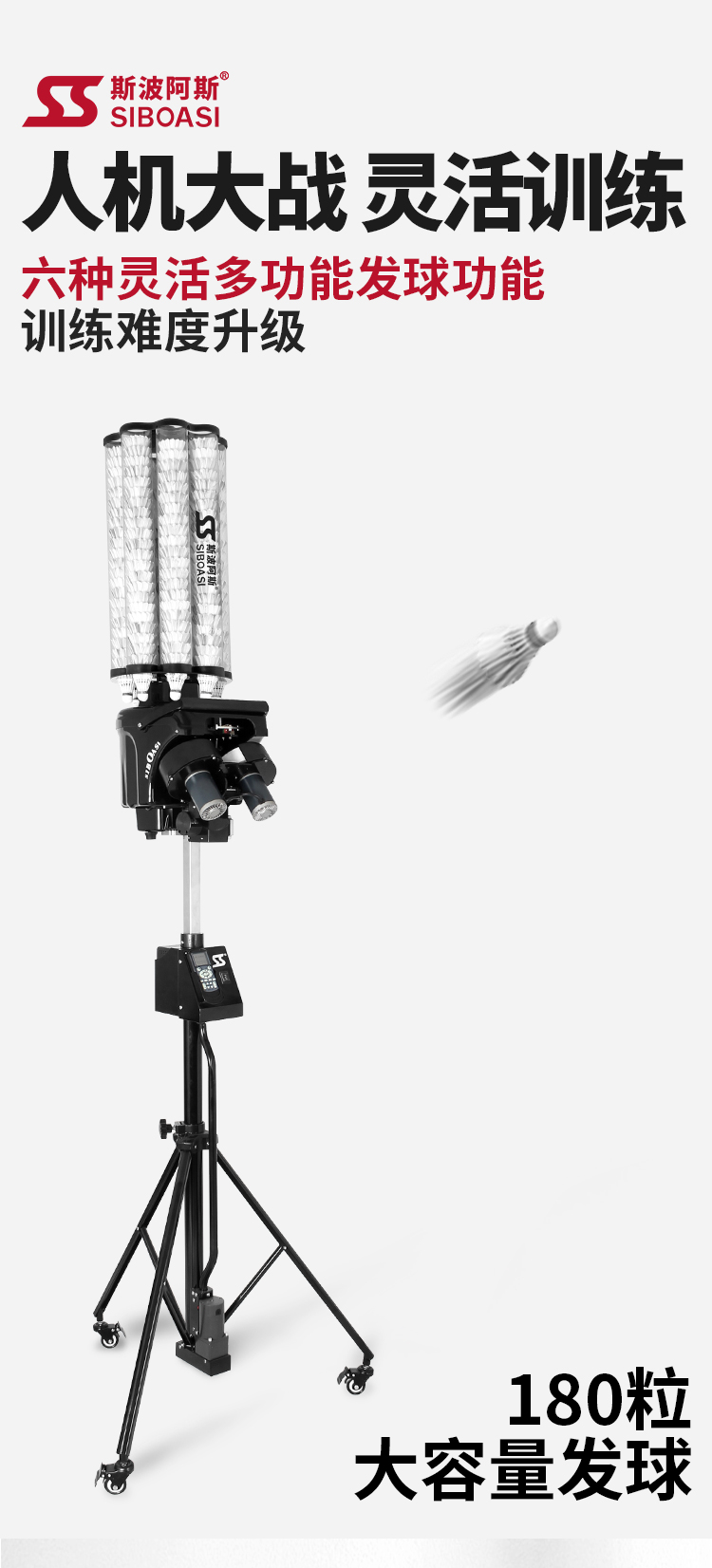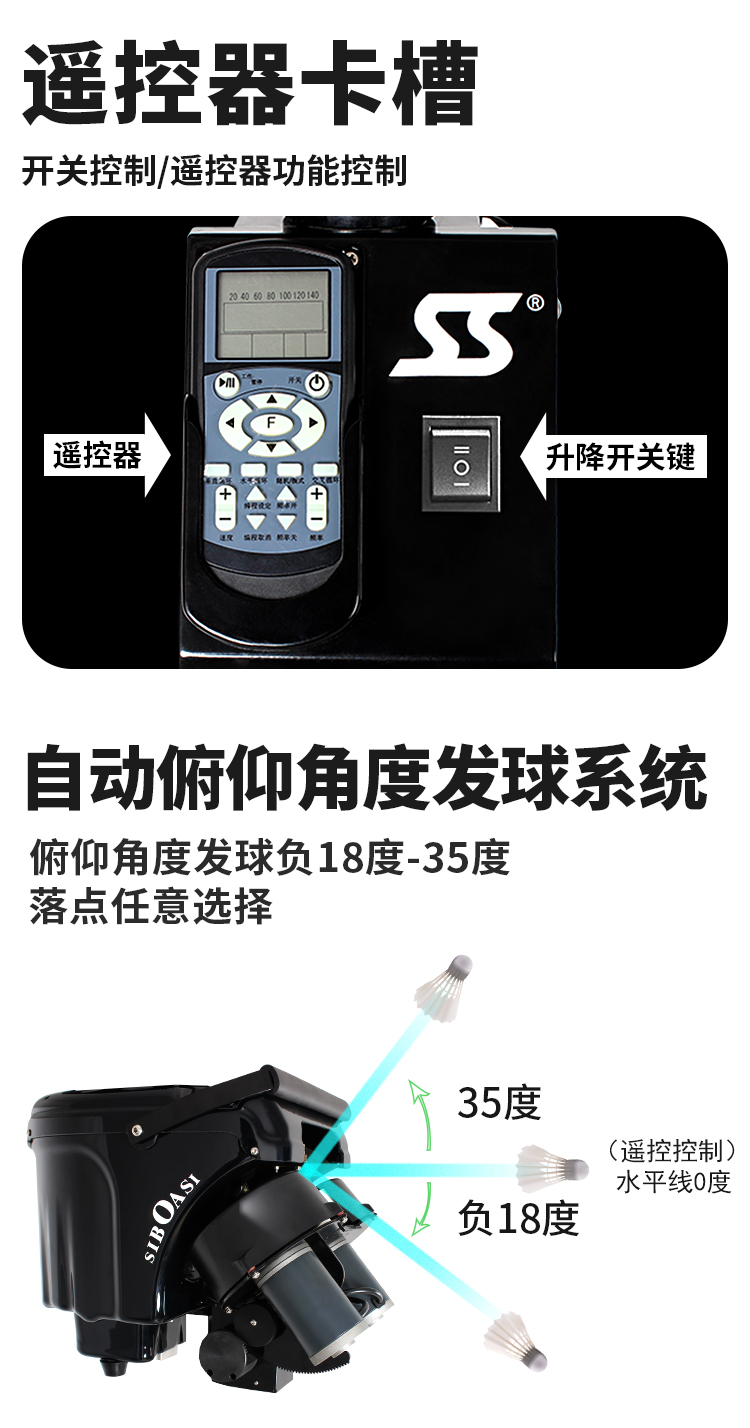 斯波阿斯 S4025智能自动羽毛球发球机发球器户外运动智能体育用品遥控陪练器球馆教练机训练器练习器