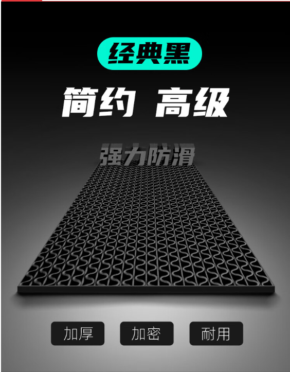 防滑地垫 5.5mm厚度 pvc镂空防水垫 地毯 门垫 厕所防滑垫浴室户外游泳池停车场地毯 黑色60*60cm