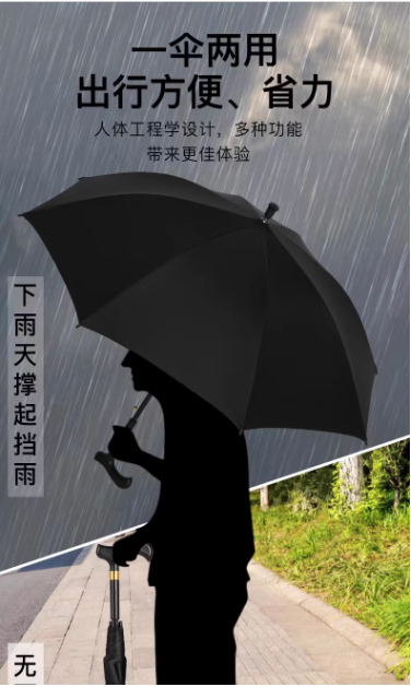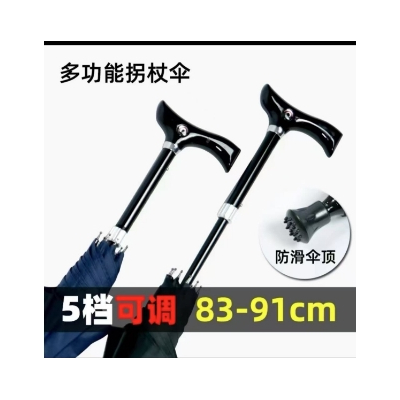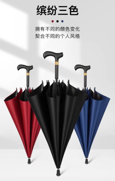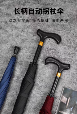 商品名称:雨伞 新款拐杖伞 铝合金蓝色可调节 83至91cm 长柄伞 自动双骨黑胶晴雨伞