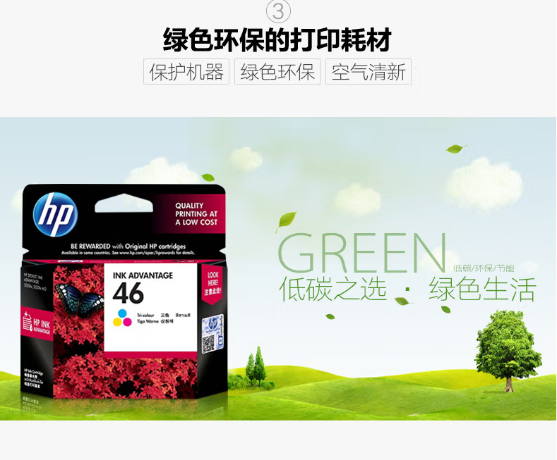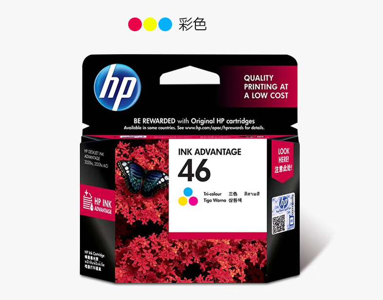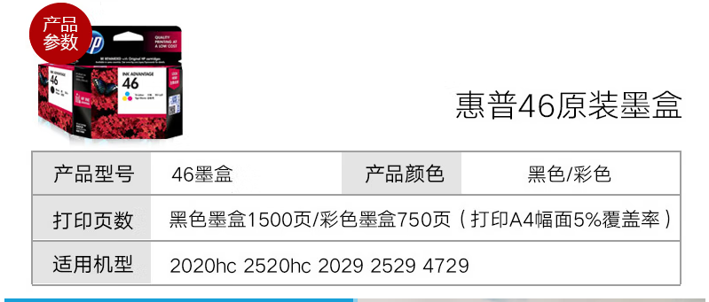 商品名称:惠普 墨盒 CZ638AA 46 彩色原装 适用hp deskjet 2020hc/2520hc/2529/2029/4729打印机