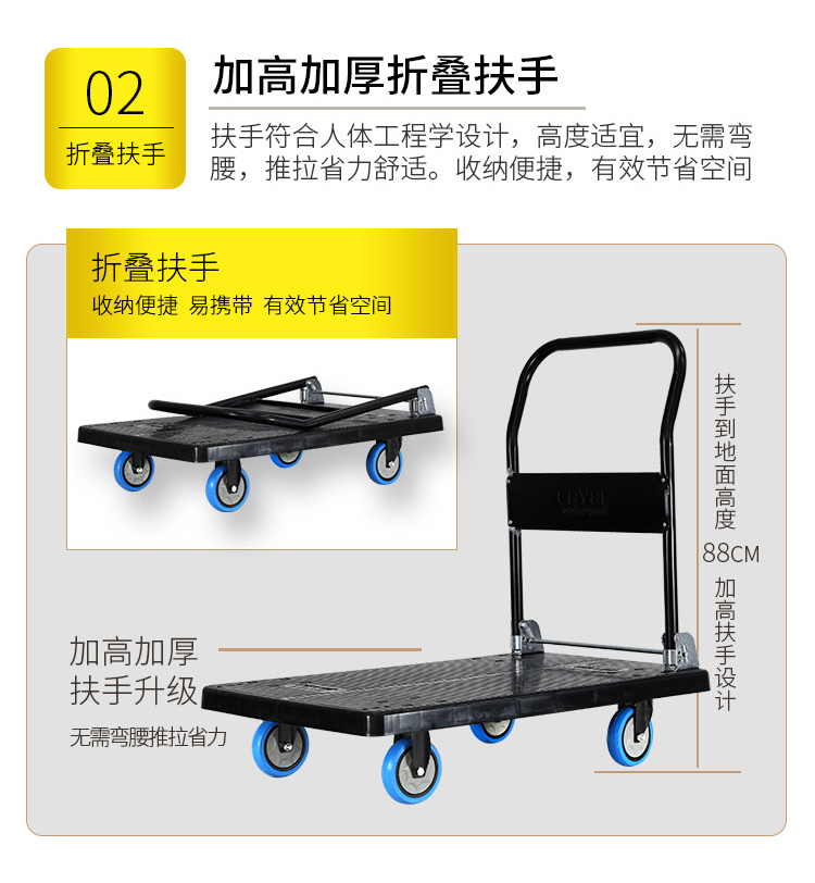 商品名称:搬运宝 大号90X60cm 承重600斤 BYB-52H炫黑 轻音小推车折叠 平板车 手推车 拖车手拉车拉杆车货车塑料 搬运车