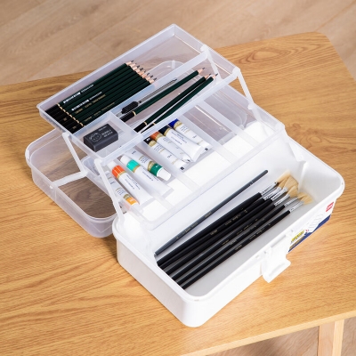 得力(deli)中号多功能便携学生美术工具箱 学生画笔水彩颜料收纳箱绘画画手提箱 开学礼物68302