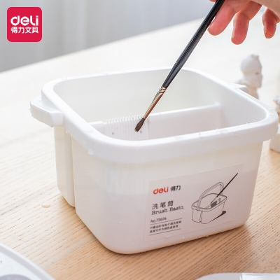得力(deli)基础款美术用品 塑料洗笔桶 洗笔盒洗笔筒便携式洗笔桶 油画笔洗笔筒 白色73874
