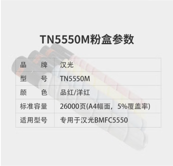 商品名称:汉光 粉盒 TN5550M 红色单支 复合机/复印机原装碳粉墨粉盒 专用于汉光BMFC5550