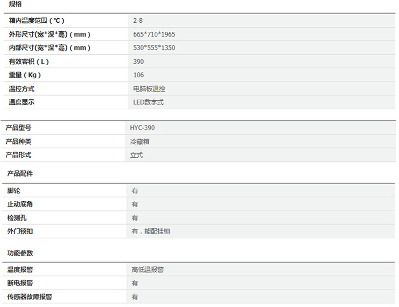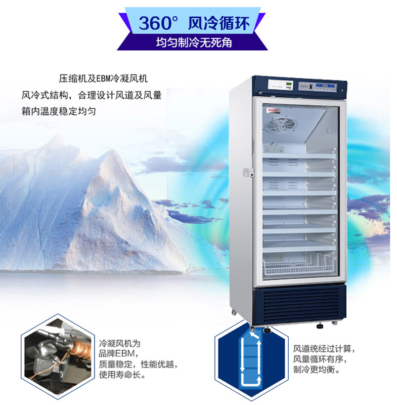 商品名称:海尔2-8度 HYC-390医用冰箱 390升药品冷藏箱 实验室风冷无霜冷柜保存箱电脑控温冰柜超温报警